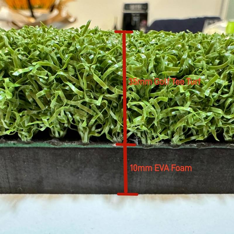 1. 35mm high density PP turf for firm stance and holding wooden tee.